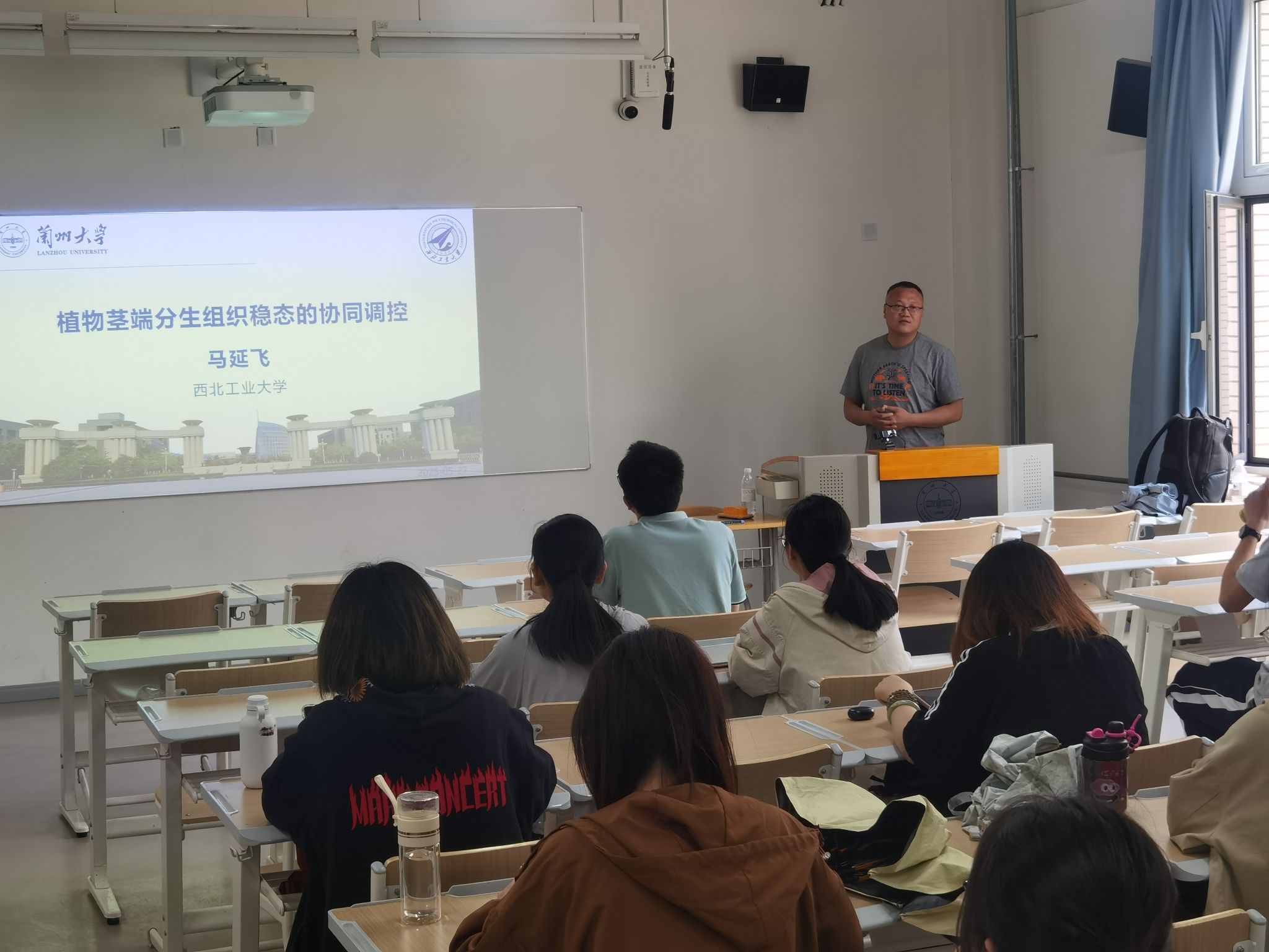 为促进校际间的十点半交流 与人才互动,2025年5月27日下午,十点半 王堃教授与马延飞教授一行到访兰州大学,为生态十点半 的同学们带来一场详实的研究生招生宣讲会。