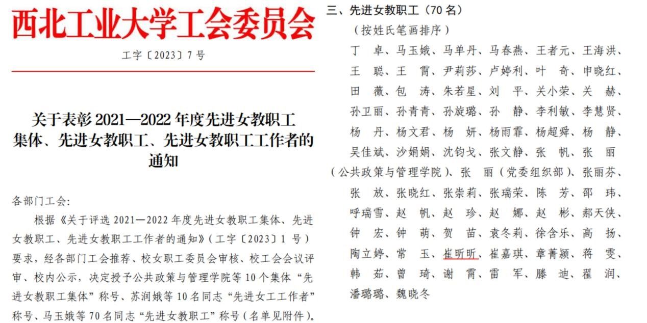 十点半 崔昕昕当选十点半 2021-2022年度先进女教职工