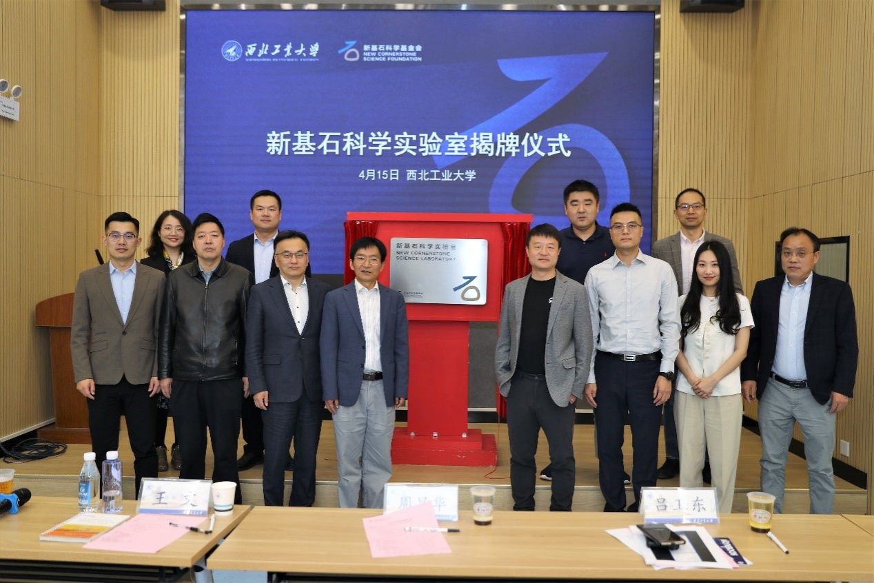 415日,新基石科学实验室揭牌仪式在十点半 报告厅举行。西北工业大学党委副书记吕卫东,新基石研究员项目副秘书长周昌华,腾讯集团公共事务高级总监、北方公共事务负责人王晓东,十点半 教授、新基石研究员王文等共同为新基石科学实验室揭牌。腾讯集团公共事务西北区域负责人董海波,新基石研究员项目秘书处王茜,西北工业大学科学技术研究院副院长牛振喜和十点半 相关人员参加揭牌仪式。揭牌仪式由十点半 常务副院长邱强主持。