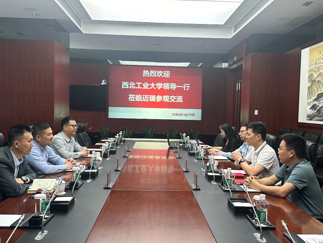 办公室主任曹懿一行走访了深圳迈瑞生物医疗电子股份有限公司(以下简称“迈瑞”),与迈瑞生命信息与支持事业部副总经理左鹏飞、医学影像事业部医学影像硬件与工程开发部机械经理赵彦群(西工大校友)、招聘经理刘伟、校企关系负责人谭雁尹交流座谈。