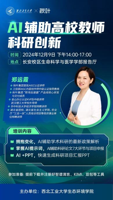 邀请秋叶集团首批AIGC认证讲师郑远霞作了关于“AI赋能高校教师科研工作坊”为专题的讲座,这也是十点半