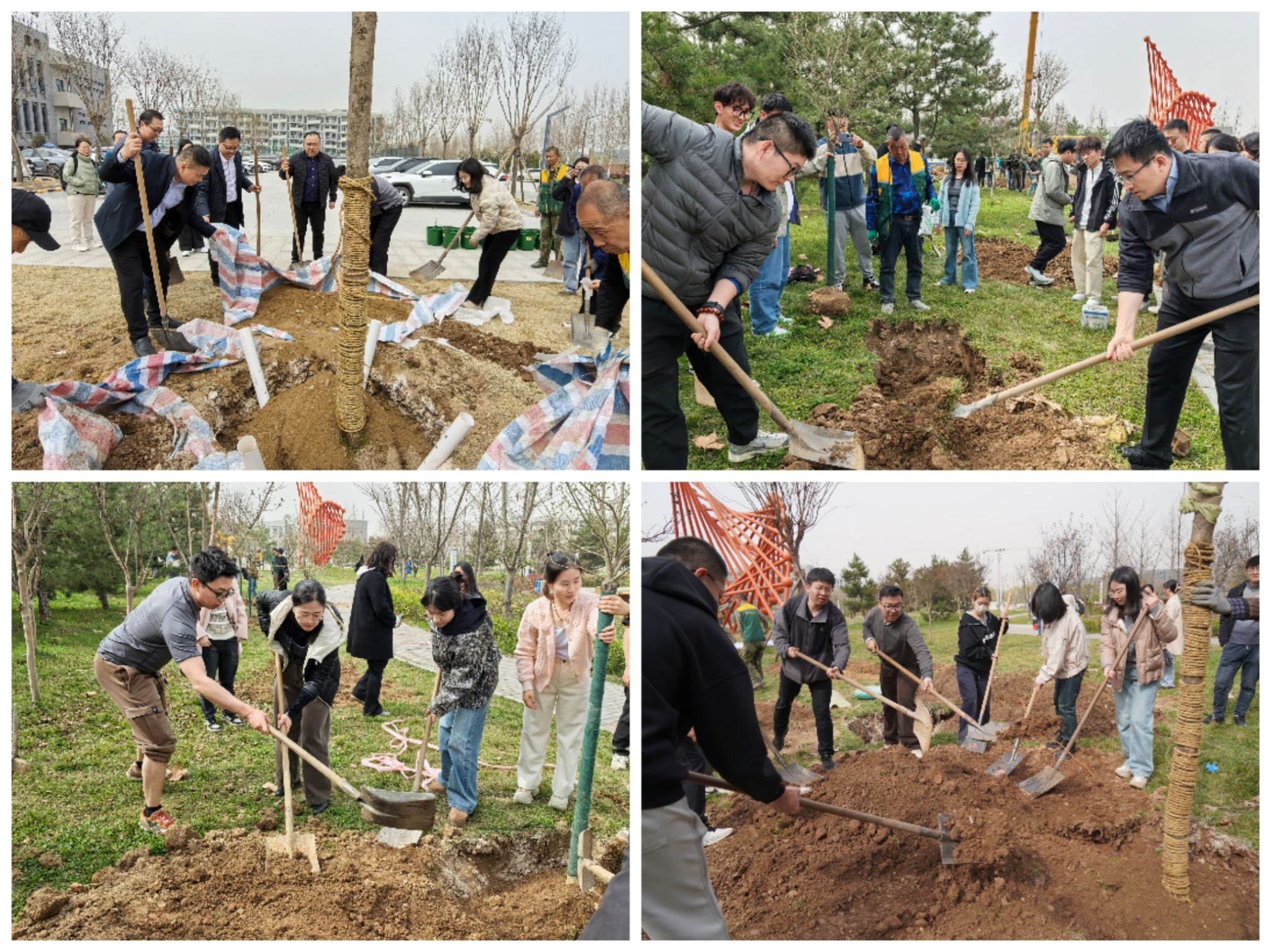 随后,在后勤集团专业园林师傅的指导下,师生们分组进行植树,现场气氛热烈而有序,每个人都积极参与其中,亲身体验劳动的乐趣与价值。挥锹铲土、栽种树木、培土围堰、浇水灌溉,每一个步骤都凝聚着大家的汗水与心血。大家在劳动中学到了知识,增长了见识,培养了劳动观念和动手能力,不仅为校园增添了一抹新绿,更在大家心中种下了劳动的种子。通过亲身实践,大家深刻体会到了劳动的艰辛与不易,也更加珍惜眼前这片由自己亲手栽种下的绿色。