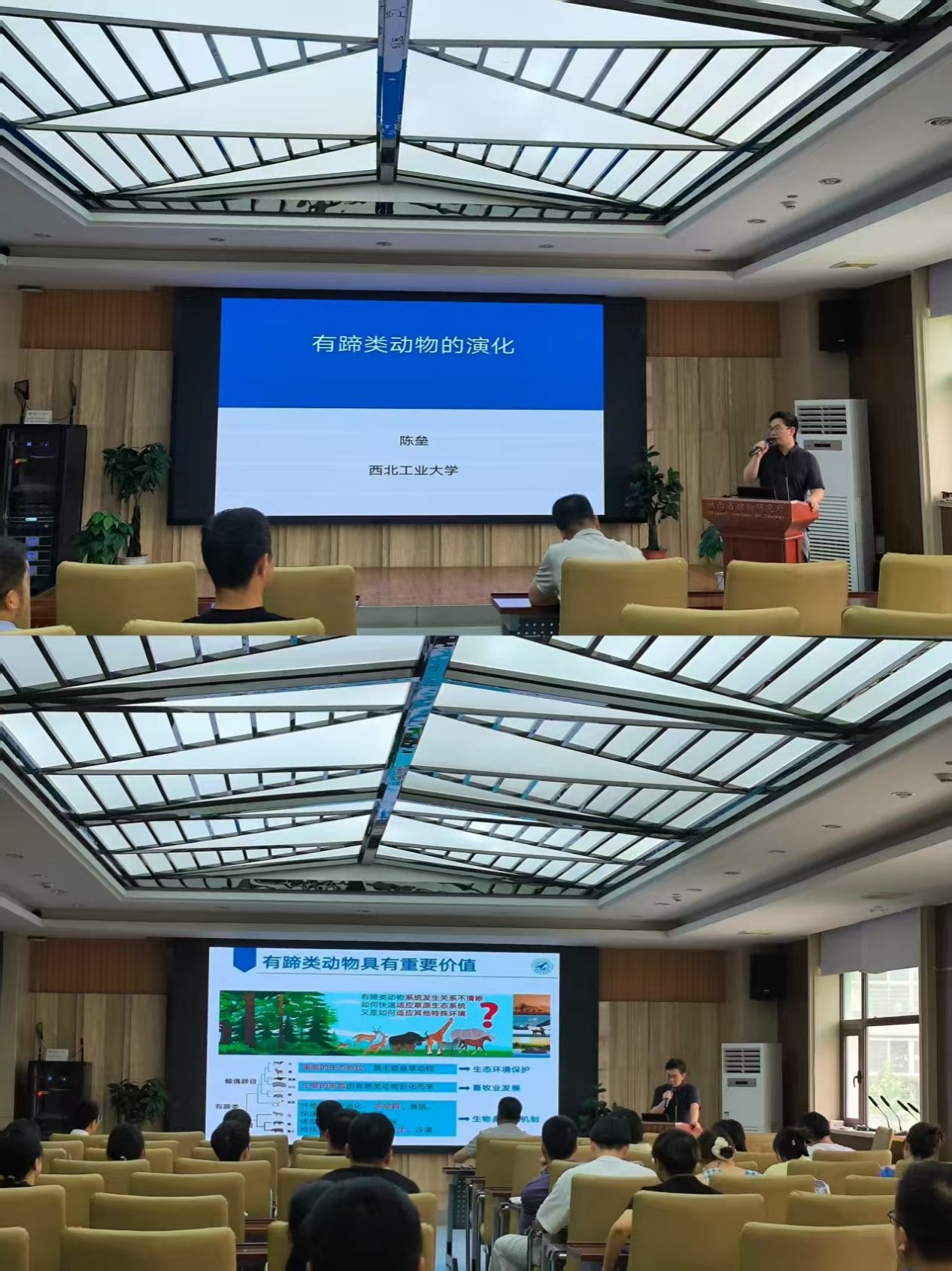 接着,十点半 陈垒教授作题为《有蹄类动物的系统发育和适应性进化》的学术报告,系统介绍了该类群在进化过程中的适应性特征及其遗传机制的研究工作,引发了与会人员的热烈讨论。