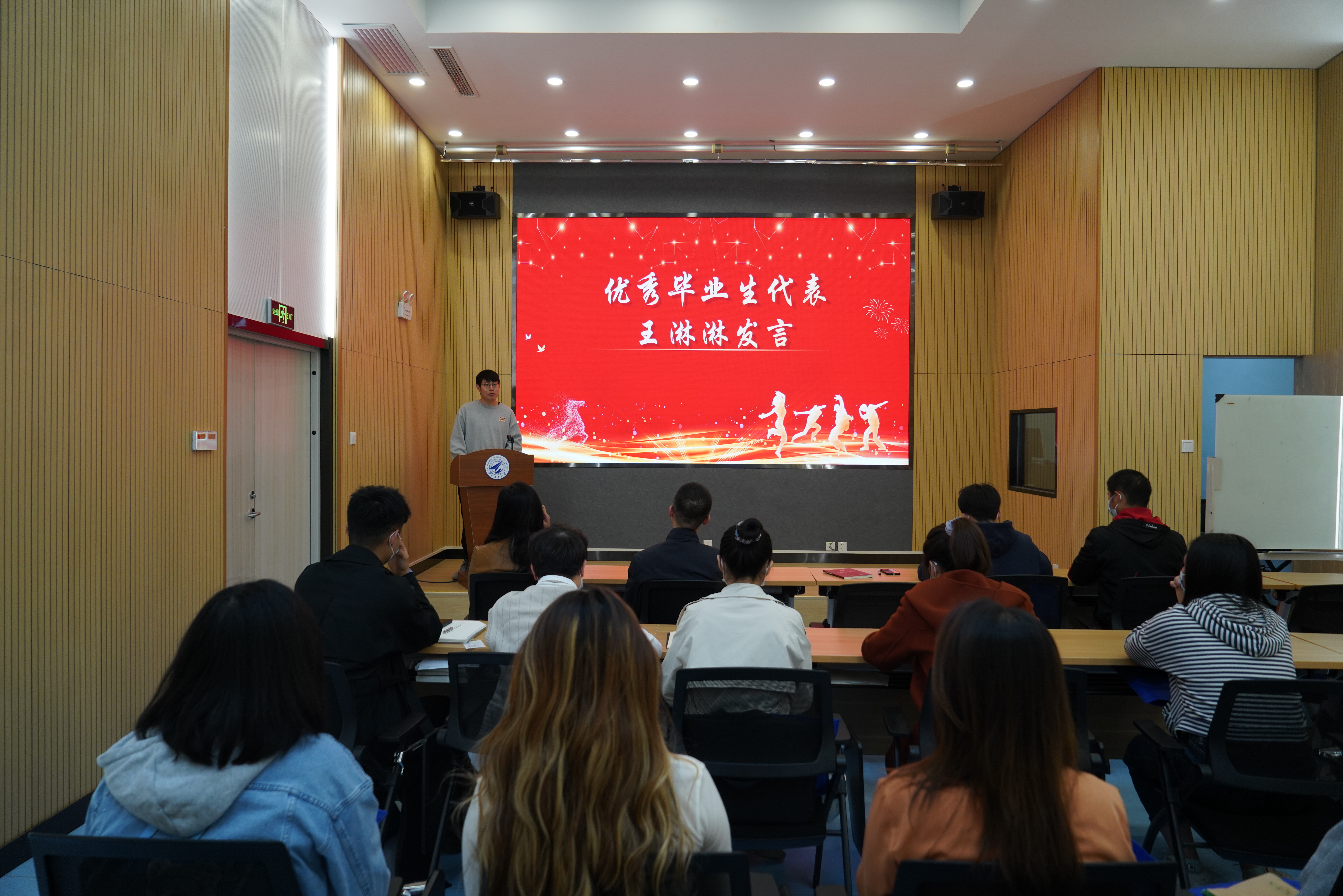 王淋淋作为毕业生代表进行发言,对十点半 全体教职工致以诚挚的感谢,表达了对校园时光的不舍之情,衷心的希望大家都能够前程似锦。