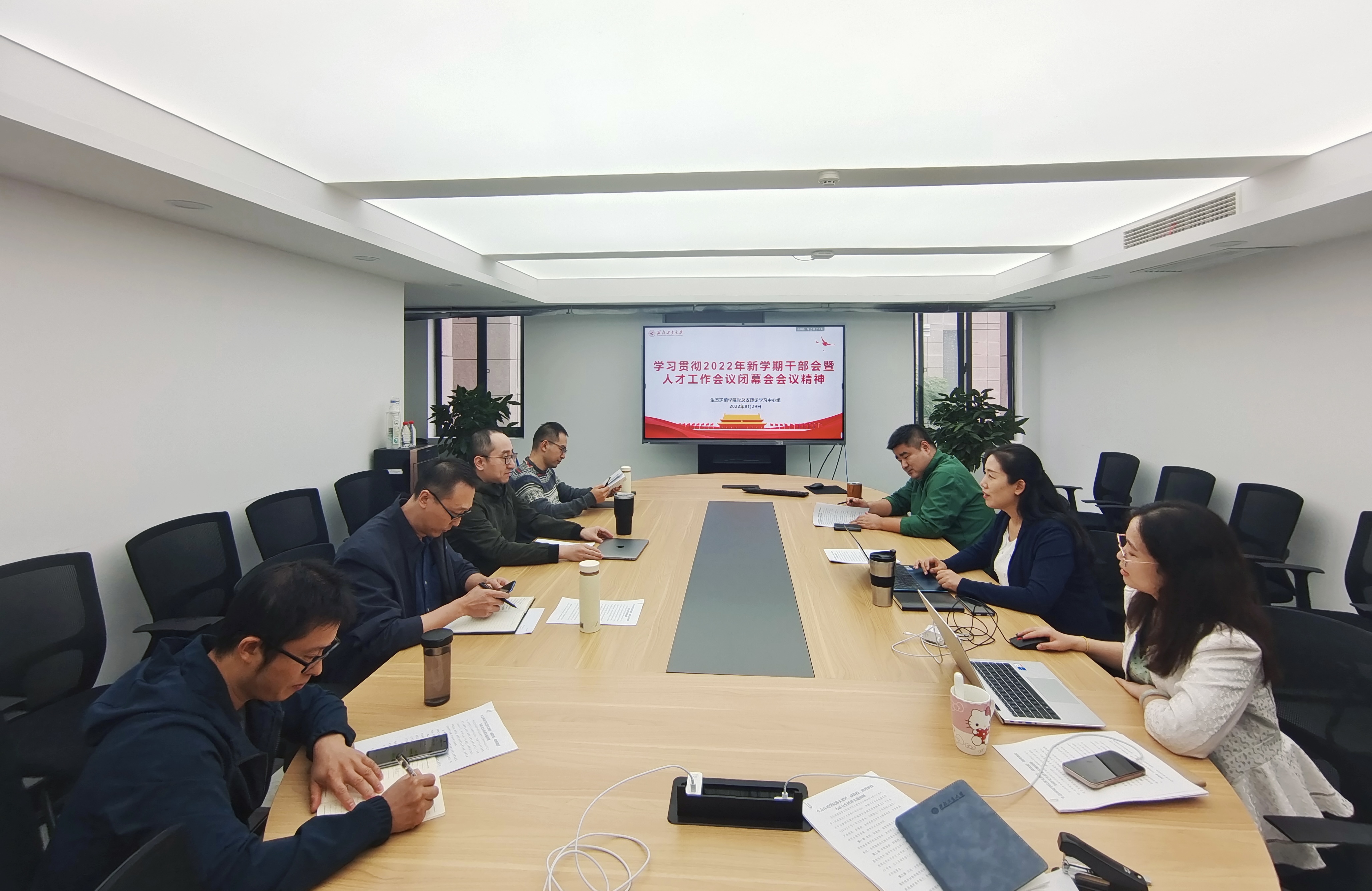 2022年8月29日,十点半 在长安校区十点半 综合会议室组织学习贯彻新学期干部会暨人才工作会议闭幕会会议精神,学习十点半 四个“行动计划”,结合十点半 实际研究部署新学期工作。会议由十点半 党总支书记、副院长牟蕾主持,十点半 领导班子、理论学习中心组成员参加会议。