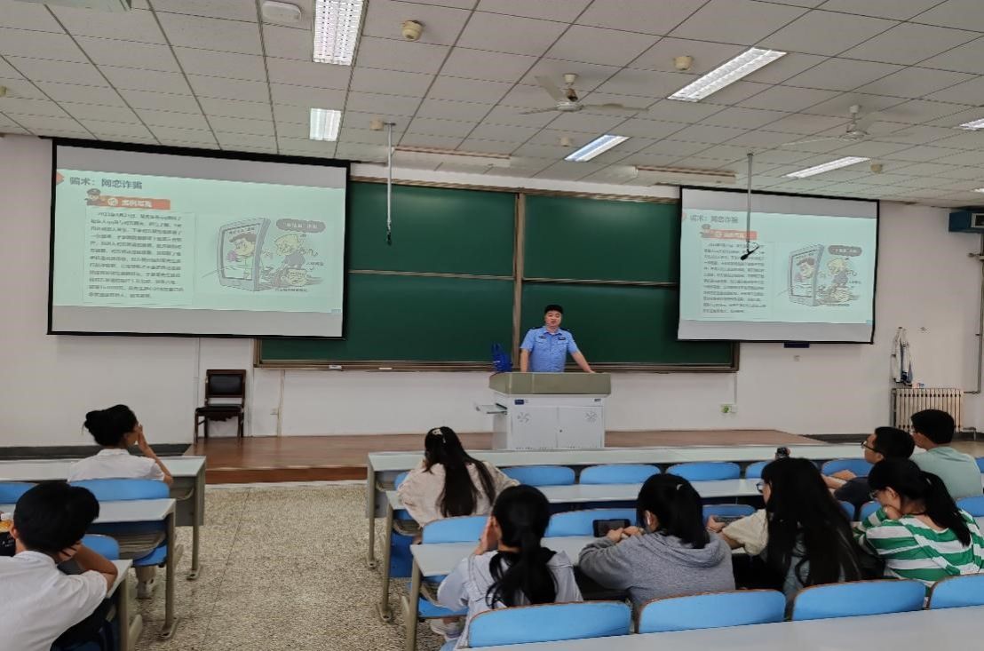 杨警官介绍了目前电信网络诈骗的严峻形势,并为同学们剖析了电信网络诈骗典型案例。他强调“反诈进校园活动”是每年开学季的一项重要工作,通过对新生开展校园常见电信诈骗案件的种类以及防范知识的宣传讲解,使同学们进一步增强防范电信网络诈骗意识,提高诈骗识别和防范能力,营造和谐平安的校园环境。