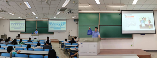 杨警官分别从警惕、识别电信诈骗的手段和让学生如何不成为电信诈骗的帮凶两个主题给同学们进行讲解,并以发生在同学们身边的实际案例为切入点,介绍了杀猪盘、网恋骗局、刷单返利、视频诈骗、投资理财等电信诈骗的常见手段和套路,让大家了解电信诈骗团伙作案手法,并告知大家如何辨别真伪、提高警惕,遇到类似情况时能够保持头脑清醒、做出正确的判断。