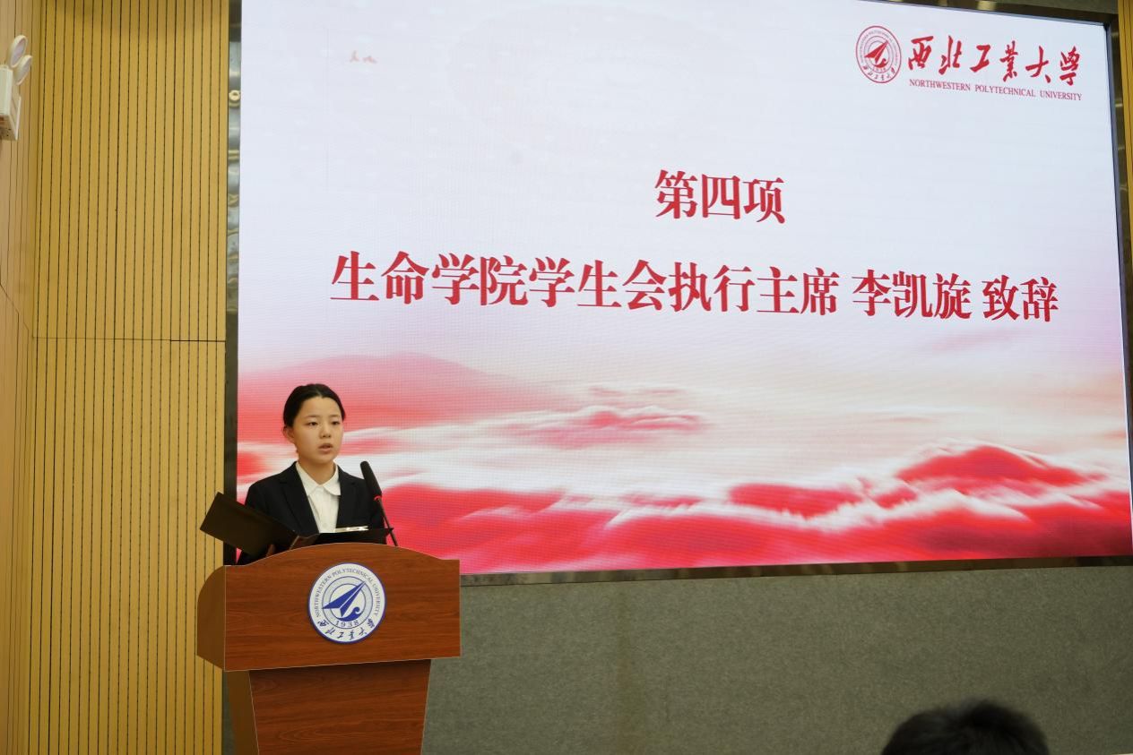 学生会执行主席李凯旋致辞,她从树立远大理想、打好专业基础和严格自律意识等三方面和大家分享了几点工作经验,并表示期待两院学生分会能够进一步加强合作、共同进步。